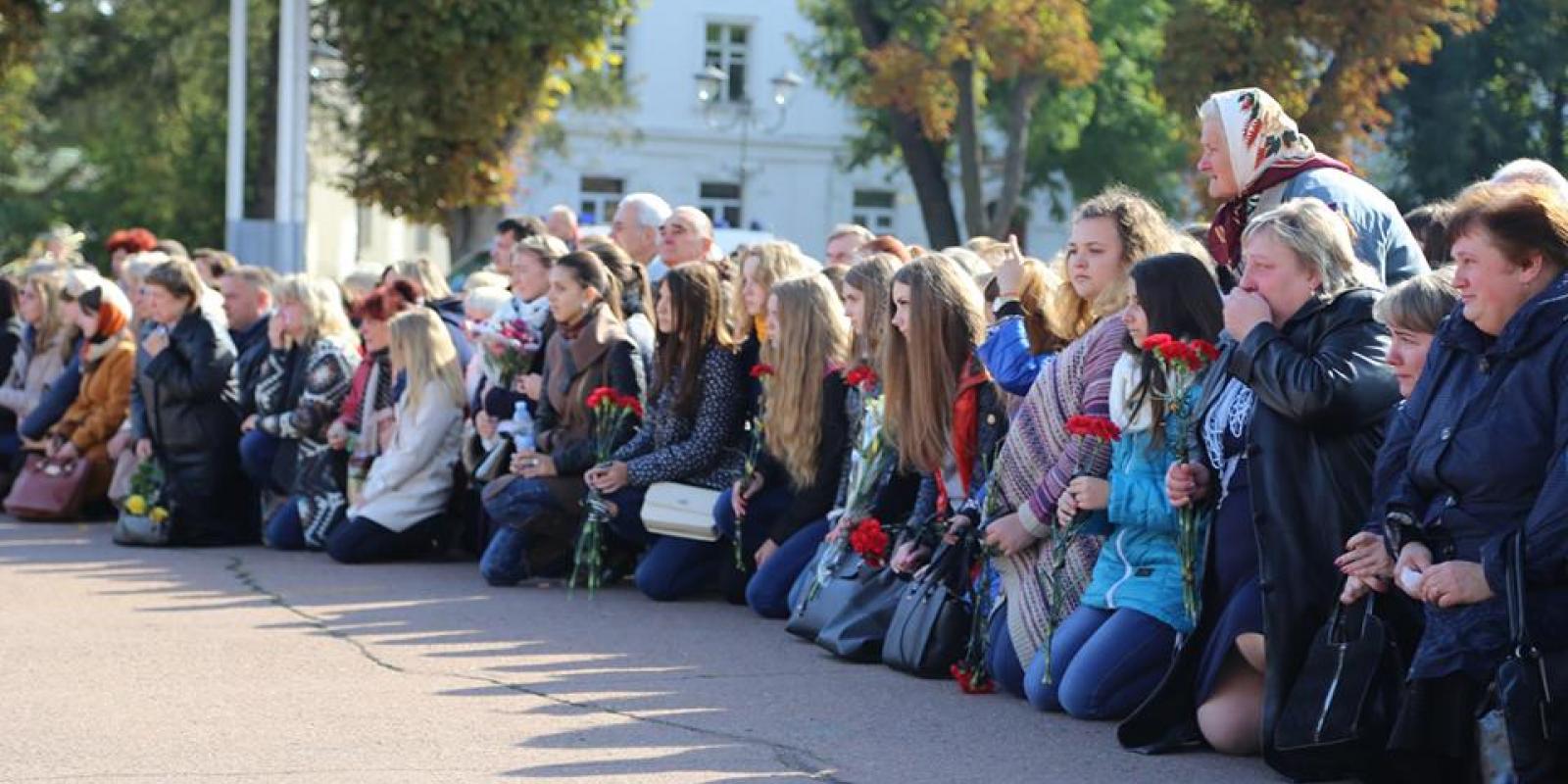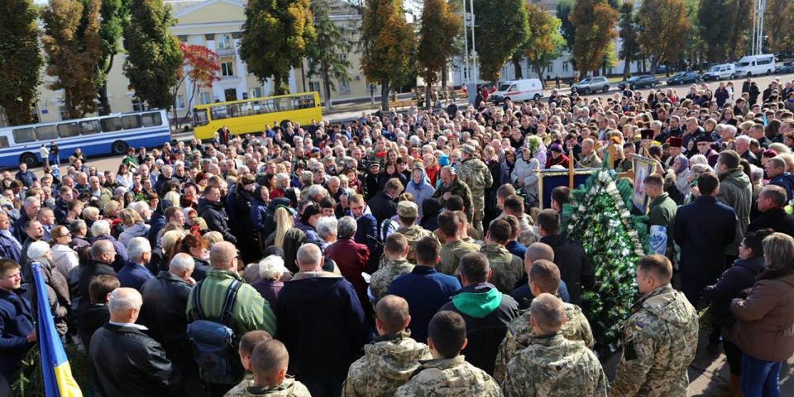 Сотні людей прийшли на головну площу міста, щоб попрощатися з загиблим Героєм.